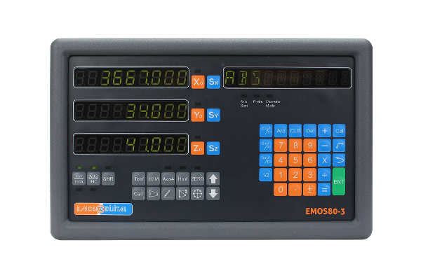 EMOS80-3 Digital Displays are used in lathes, milling machines, boring machines, grinding machines, special machinery, and automation applications. They have a 3-axis reading capacity. Turkish language option available. Aluminum housing. Locally manufactured.