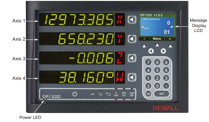 The DP1200 Newall Digital Display has a 4-axis reading capability.