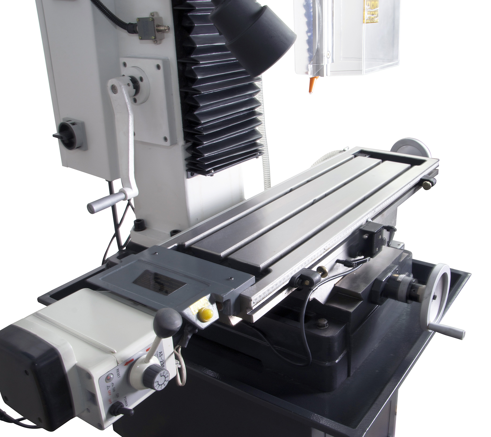 The FS28 PLUS Bench Milling Machine offers durability with its heavy-duty cast body and powerful motor, while providing precise control with its stepless vario speed adjustment and digital speed indicator.