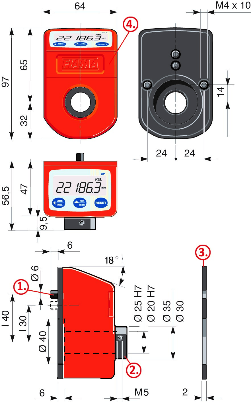 EP20/EP25 electronic indicator;For the measurement of motion and angles, meter with sensitive and side full hole (Side Hollow) shaft electronic indicator;
