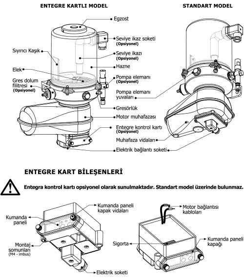 In order to adjust the operation and waiting times of the pump, the electronic control card, which can be used under the engine storage, is offered as optional.