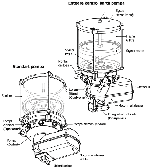 All-10 series products are electric grease pumps that work with AC voltage for lubrication purposes.These pump elements can be added to the pump between 1 to 6 according to the number of oil outputs desired.
