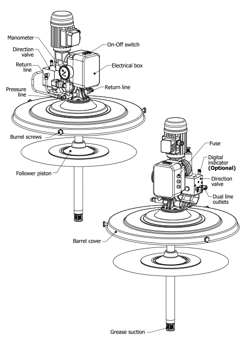 All-5 electric grease pumps are produced only for lubrication purposes.The direction valve is integrated into the pump design to operate in two -line lubrication systems.