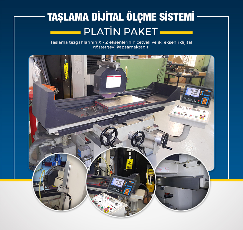 Grinding Digital Measurement Systems PLATINUM XXL Package includes X - Z Axis Scale and an LCD Three-Axis Digital Indicator. The Magnetic Linear Encoders operate with a resolution of 5µm (0.005 microns). It is suitable for surface grinding machines.