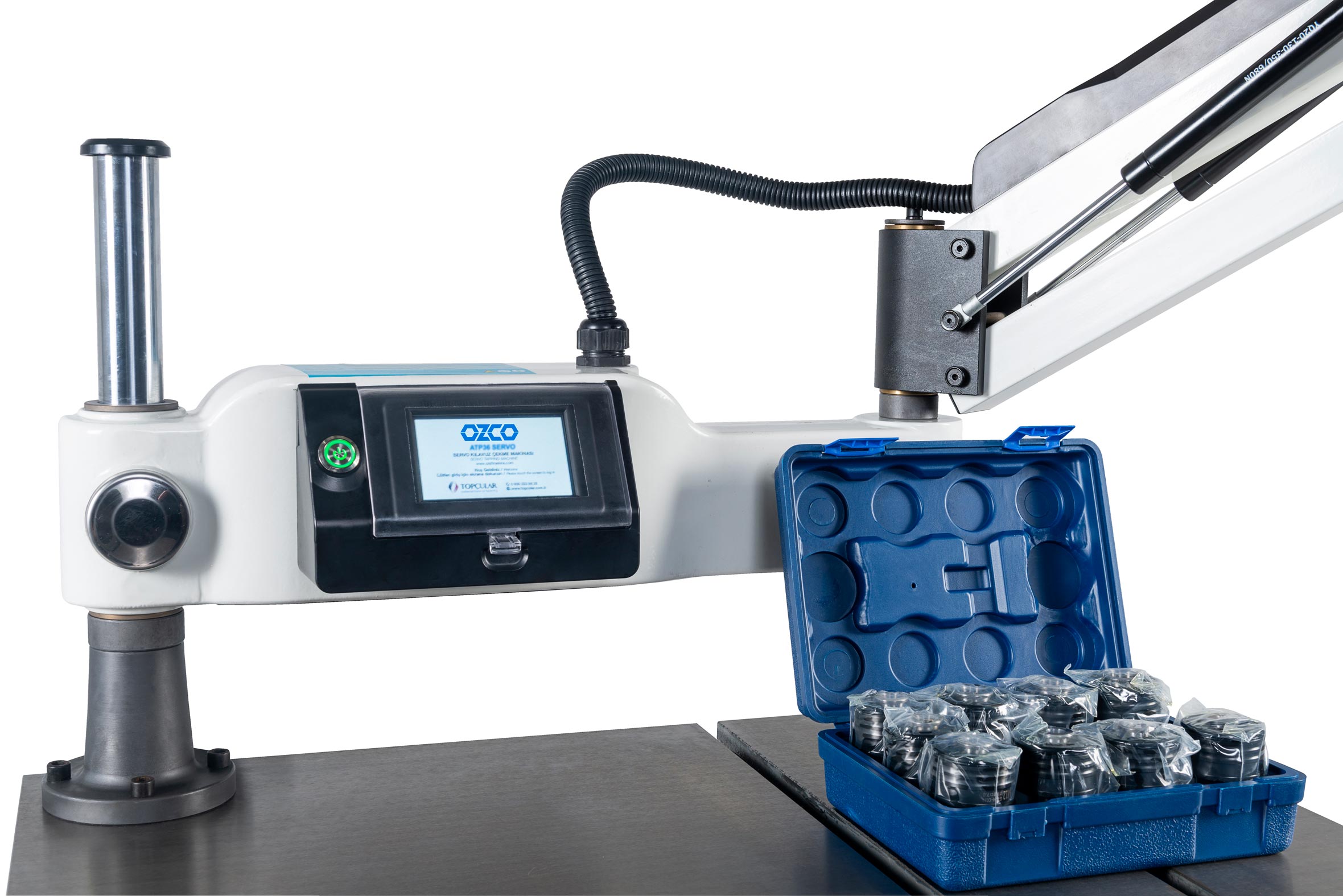 Powerful servo motor, ergonomic touchscreen, manual/automatic guide drawing, adjustable speed, torque adjustment and protection, parameter memory, safe guide holder, Turkish language option. Optional accessories are also available.
