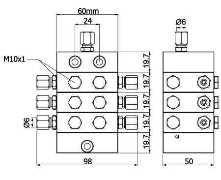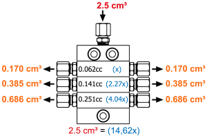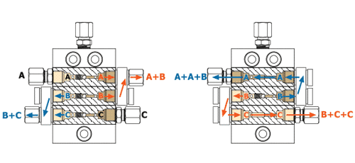 Each intermediate slice that constitutes a valve block can be created with pistons of different dose or pistons of the same diameter.