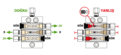 Due to the Progressive Distributor operating principle, if a lubrication point is clogged, it cuts oil to all points and is completely blocked.In this way, control of the lubrication in the distributor is possible.