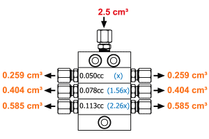 Each intermediate slice that constitutes a valve block can be created with pistons of different dose or pistons of the same diameter.