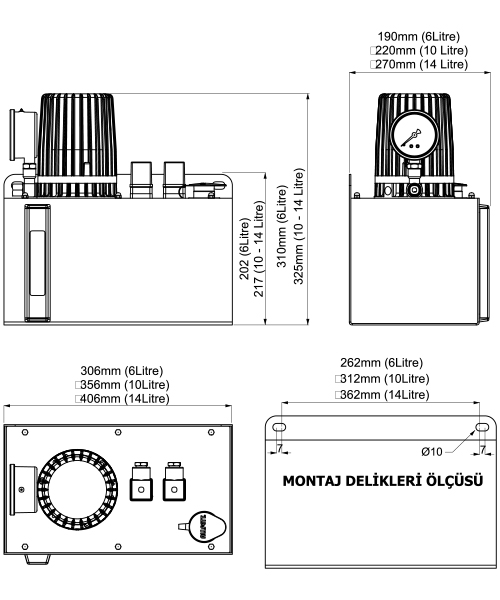 | HUZNE CAPACITES | Sac hazne : 6 - 10 Litre, 14 Litre |