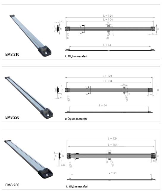 EMS320 Magnetic Scales can be used with EMOS80, EMOS100 Digital Displays, PLCs, CNC Systems, Digital Counters, and all devices with encoder reading capability.