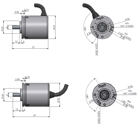 Ars S 37 Shaft Rotary ENCODER INCREMENTAL SENSITIVE MEASUREMENT, 37 mm body diameter, magnetic principle, as it works very resistant to ambient conditions, is very resistant to different shaft thickness options features.