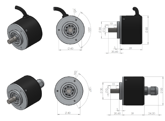 ARS S 50 Shaft, Rotary ENCODER INCREENTAL SENSITIVE MEASUREMENT WITH SSI output, 50 mm body diameter, magnetic principle, as it works very resistant to environmental conditions, has different shaft thickness options features.