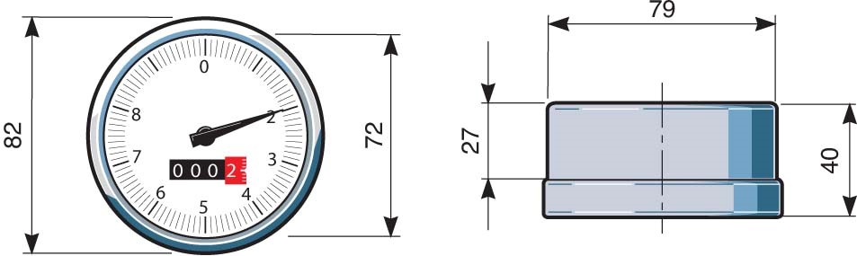 Meter, such as angle, displacement, speed of circular movements in the handle -wheelhouses, special technopolmer or metal structure robust body IP64 protected up to 80 ° C resistant to 80 ° C