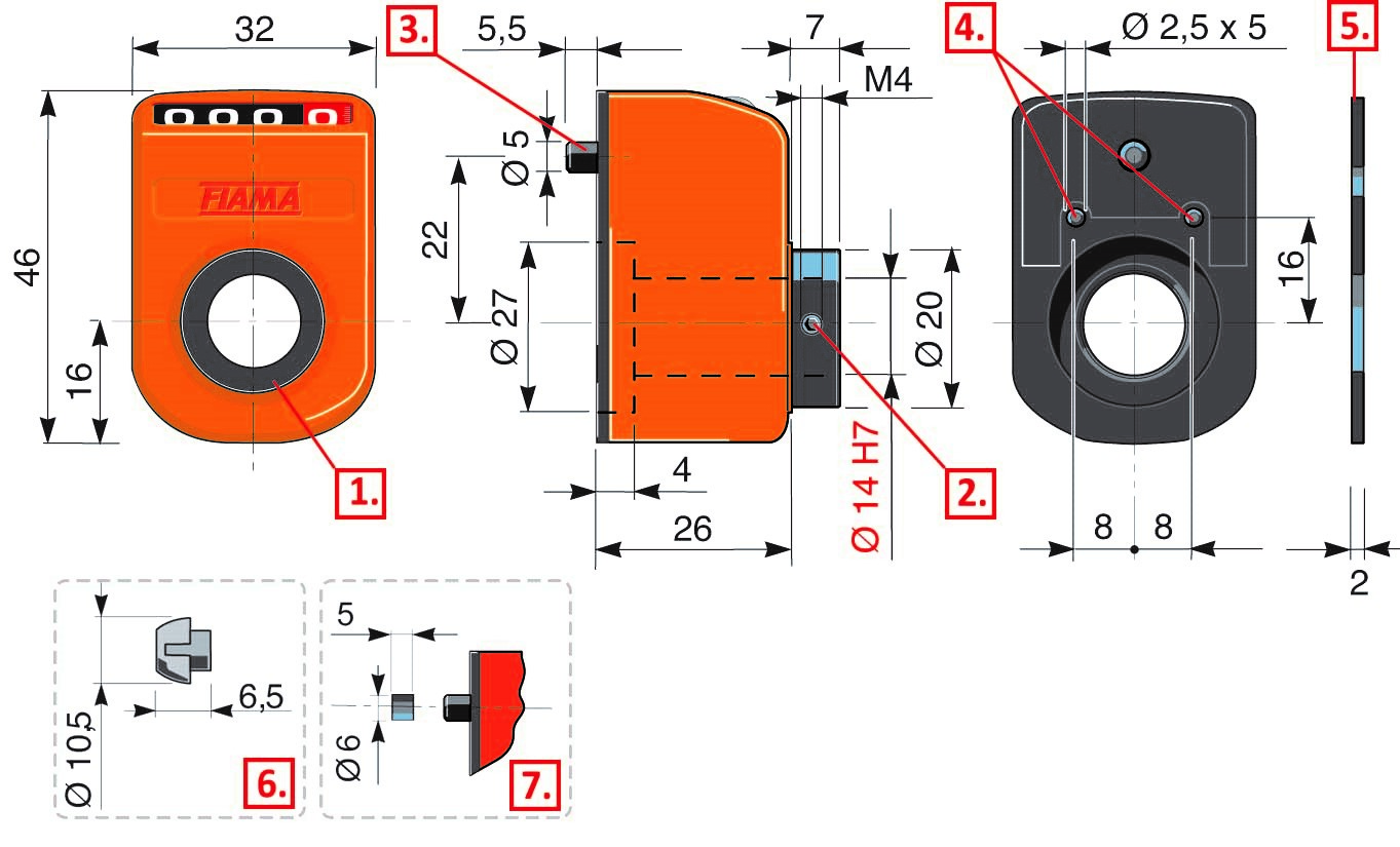 14 mm H7 Passing tolerant Full Hole (Hollow) Shaft.With extra flange, the shaft smaller than 14 mm can also be obtained.