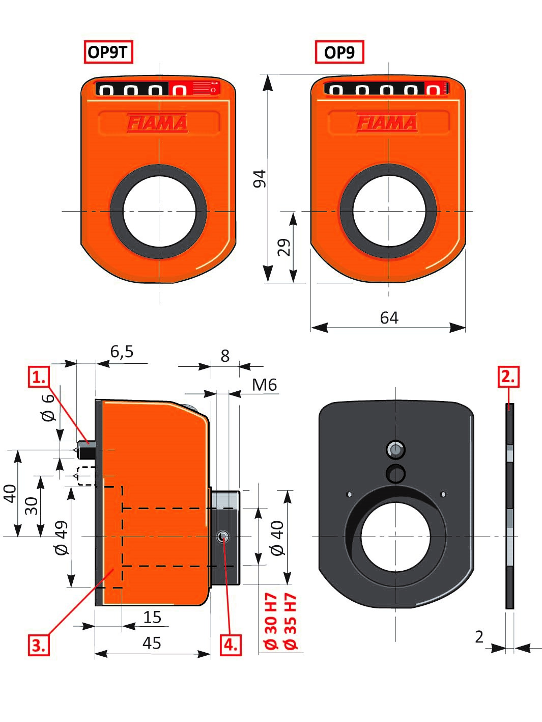 OP9 Fiama Mechanical Indicators; For Movement and Measurement of Angles, Sensitive and Economic, Hollow) Mechanical meter with shaft;