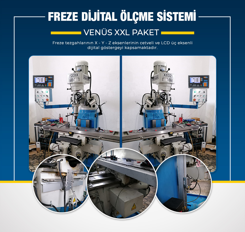 The VENUS XXL Package includes X - Y - Z Axis Scales and an LCD Three-Axis Digital Display for milling machines.