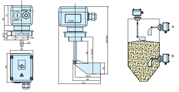 ELS 110/210 Series Motor Level Sensors Sensors, all kinds of powdered material used in the industry