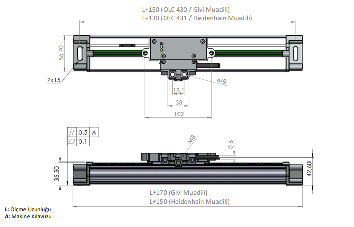 OLC43X Optical Linear Encoders consist of a seal-protected aluminum profile housing and a reader sensor that moves along this housing on bearings.
