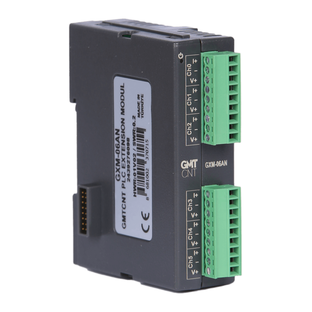 It is a PLC expansion module used to increase the input/output capacities and functions. It works together with the CPU and cannot operate on its own. It has 6 channels of 0-10VDC, 0-20mA, 4-20mA analog outputs, and the channels can be used independently with different input/output types.
