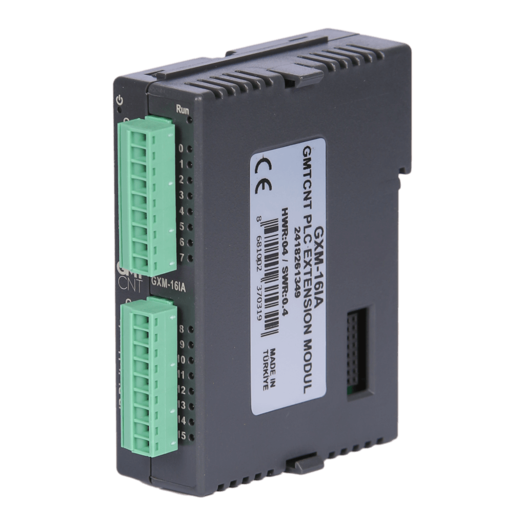 The GXM-16DN is a PLC expansion module compatible with GMTSuite software. It is used to increase the input/output capacity and can only operate in conjunction with the CPU. It features 16 channels of 24 VDC digital inputs, with isolated inputs that can be used in both PNP and NPN types.