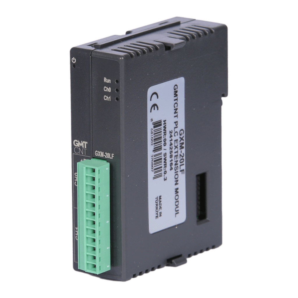 It is an expansion module used in PLC systems to increase input/output capacity and works together with the CPU. It provides two channel load cell inputs and a 5V power supply voltage. It supports 4-wire and 6-wire connections; with a 6-wire connection, the cable length does not affect the measurement result.