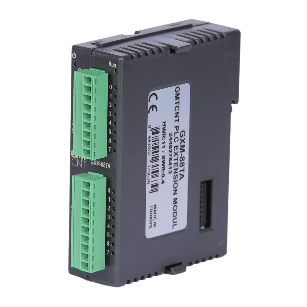 The GXM-88TA is a PLC expansion module used to increase input/output capacity. It works in conjunction with the CPU and does not operate independently. It features 8 channels of 24VDC isolated digital inputs (compatible with PNP and NPN) and 8 channels of short-circuit protected transistor outputs.