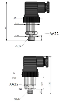 | Electrical Connection | Wired 3 x 0.14mm (4.9mm cable thickness) or with DIN43650 socket |