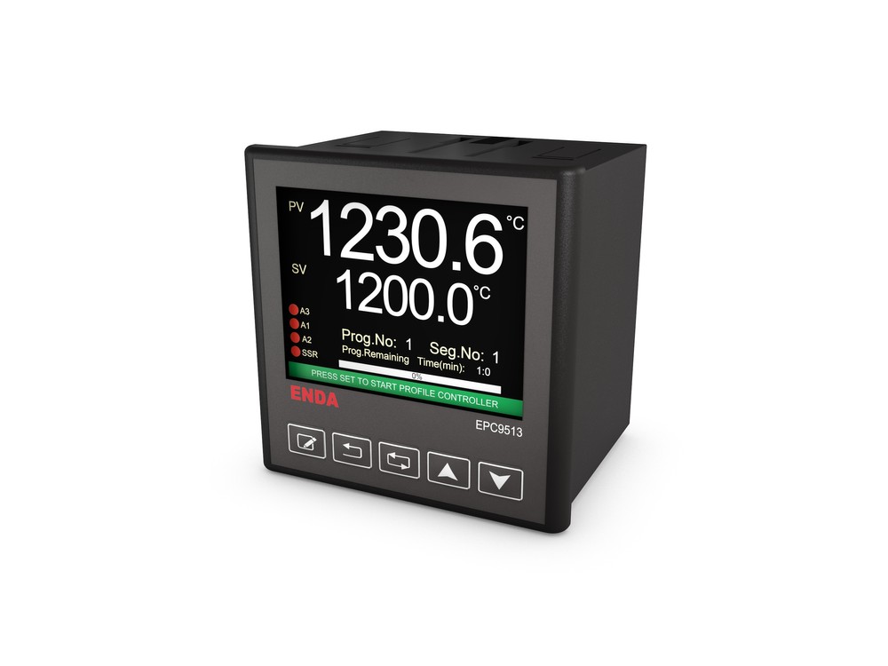 With a 3.5-inch TFT screen and a 5-digit display, it offers inputs such as TC, RTD, and NTC, along with an offset feature. It includes relay, SSR, or analog outputs, PID control, automatic setting, 24V sensor power supply, 8-step profile control, and RS-485 Modbus communication. It is CE compliant.