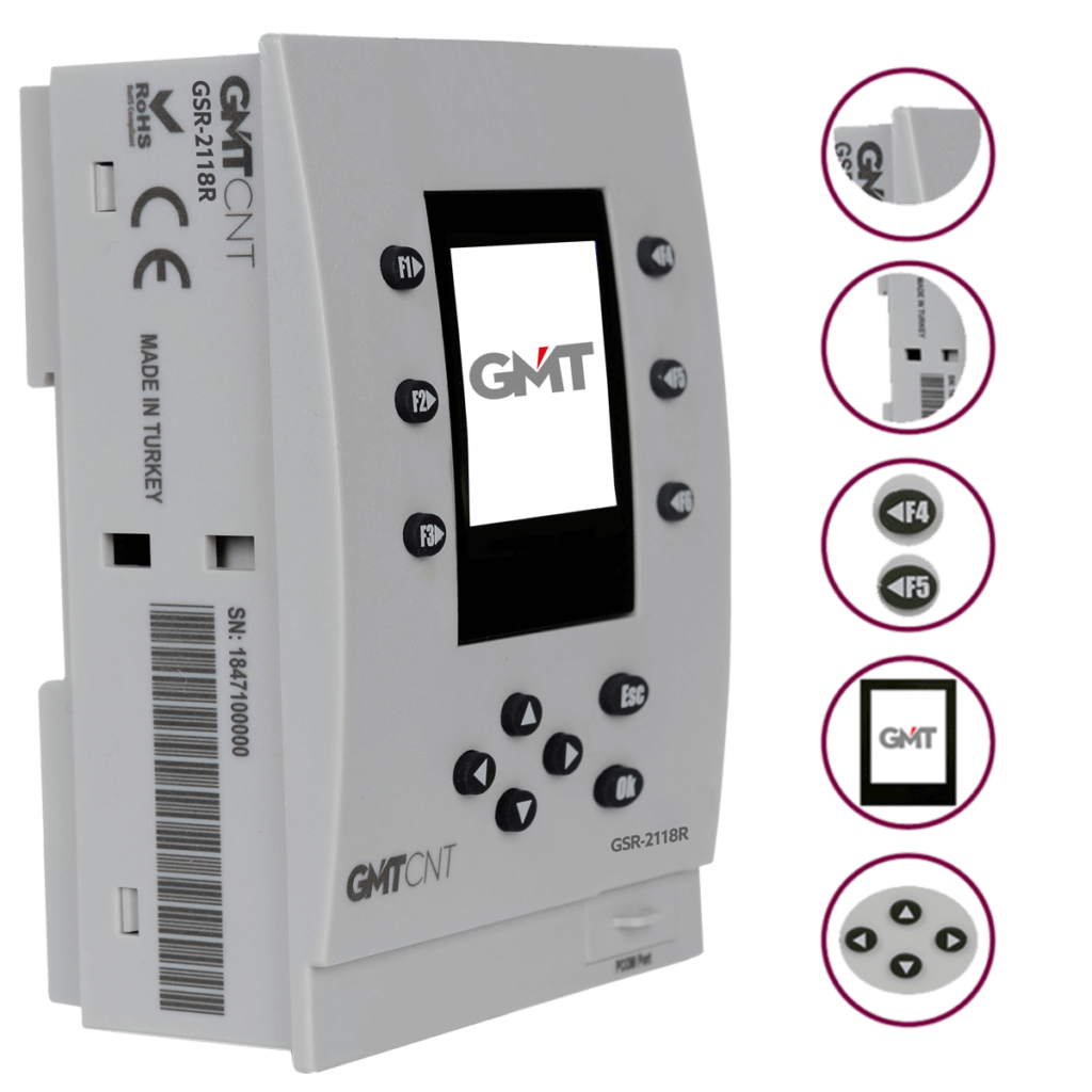 It is a PLC module with a 24VDC power supply. It features a 1.8" TFT LCD display, 11 input channels, and 8 channels of 230V AC relay output. It has 196kB of memory, a 20kHz cycle speed, and RTC support, with the ability to load programs via USB. It also includes a 2kHz fast counter input and programmable function keys.