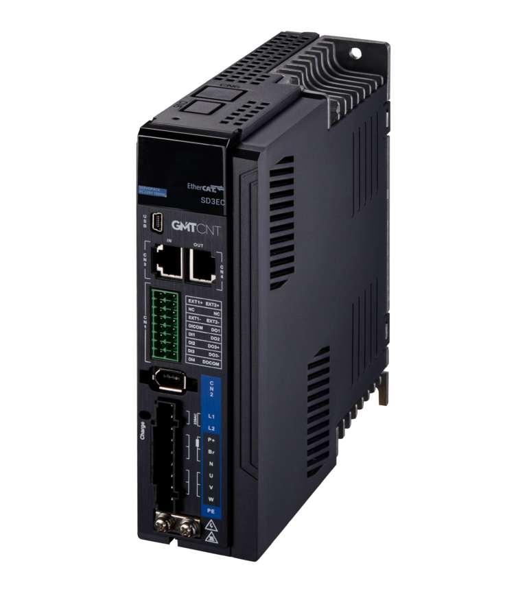 SD Series Servo Systems provide solutions to machine manufacturers in industries such as testing equipment, presses, cutting, filling, packaging, plastics, food, etc., with its compact design, Position/Speed/Torque control modes, and high performance.