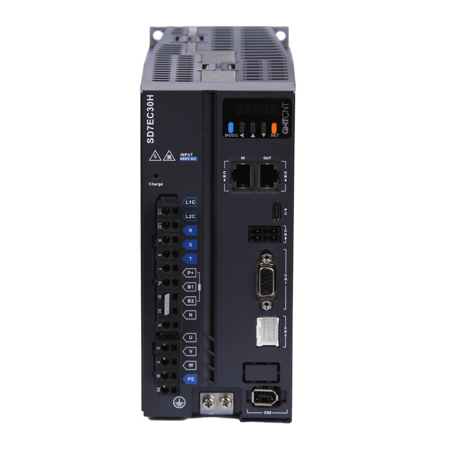 SD7EC30H servo driver provides position, speed, and torque control with 3000W power, compact design, EtherCAT support, and a 23-bit encoder. With built-in brake resistance, Auto Tuning, and error analysis features, it is suitable for industrial use. It offers easy parameter settings with USB Type-C connectivity.