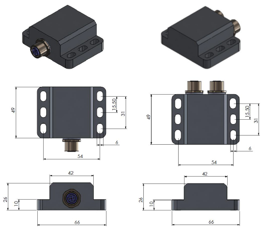 Electrical Connection For analog models: M12 5-pin (male) connector or wired, For CANopen models: M12 5-pin (male) and M1