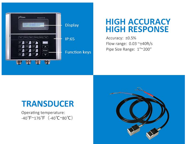 The D118 Fixed Type is designed to measure the flow rate of the fluid passing through a closed line.Fixed type of ultrasonic flower does not touch the liquid when measurement.The sensors are connected to the pipeline by handcuffs.