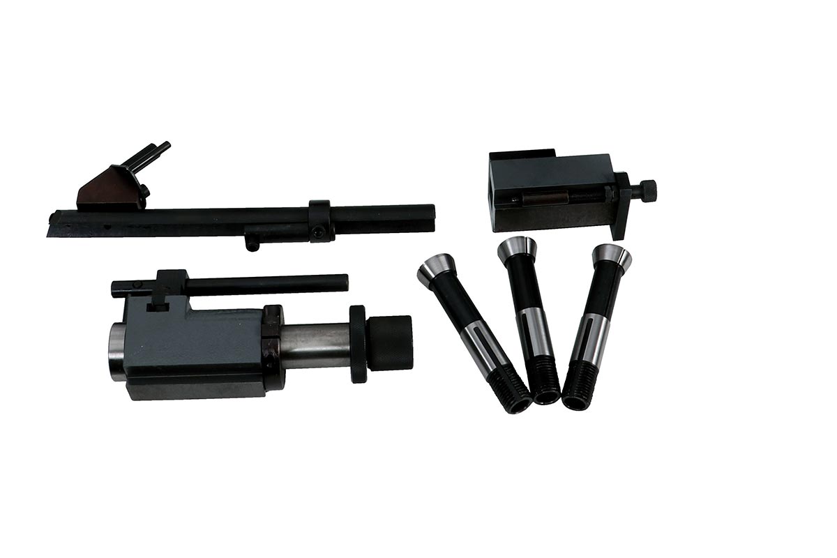 The shipment includes a grinding wheel, drill bit sharpening attachment, end mill sharpening attachment, lathe cutter sharpening attachment, and Ø 4-6-8 mm collets. Optional accessories are also available.