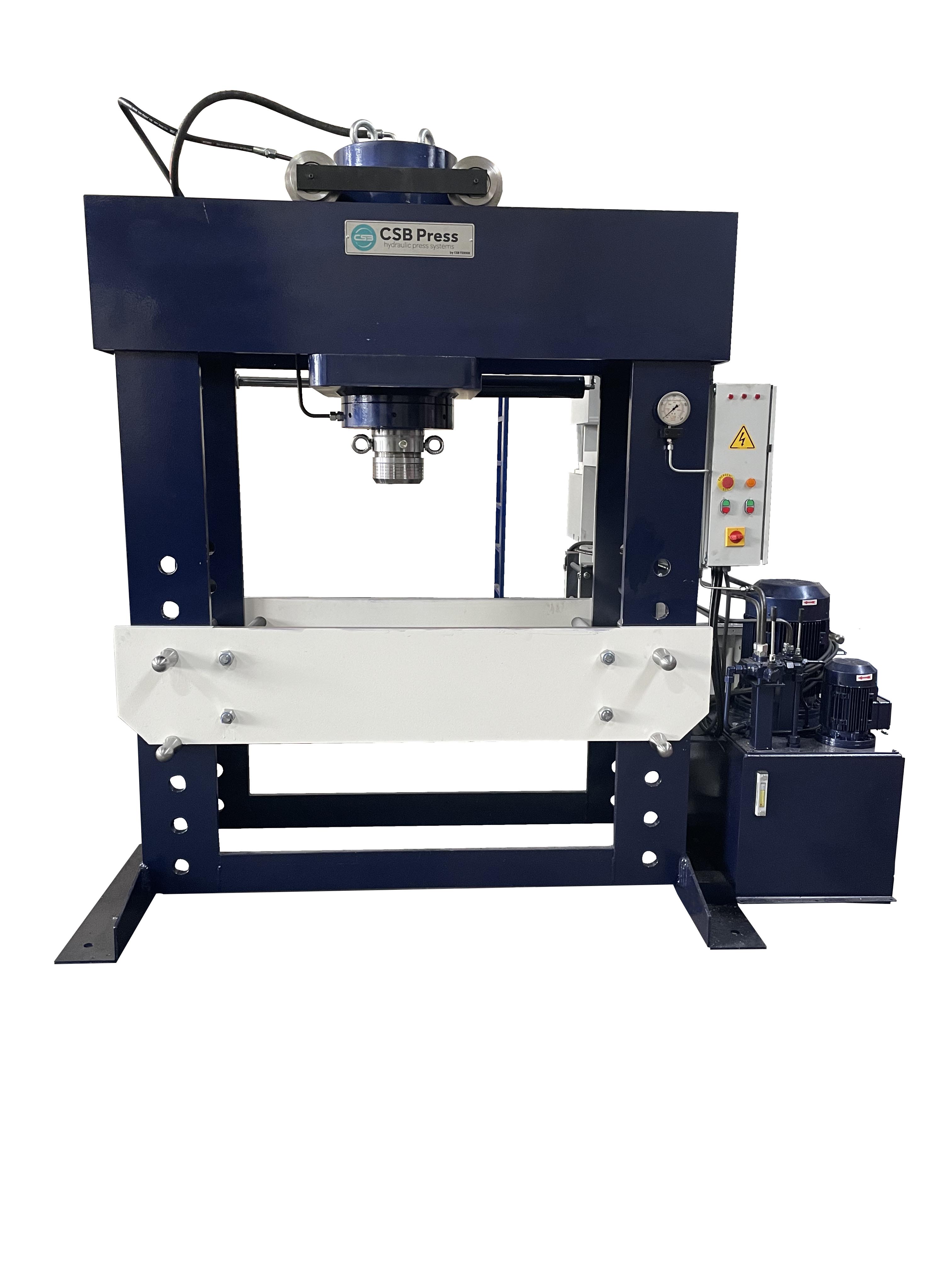 Workshop type presses offer high efficiency in the straightening of wide and long sheets, plates, and pipes. These machines, which can be produced in various sizes and tonnages, provide effective solutions, especially for tasks such as ball installation and removal. Their durable structure ensures reliable performance even under tough conditions, while the user-friendly design speeds up workshop processes and increases productivity.